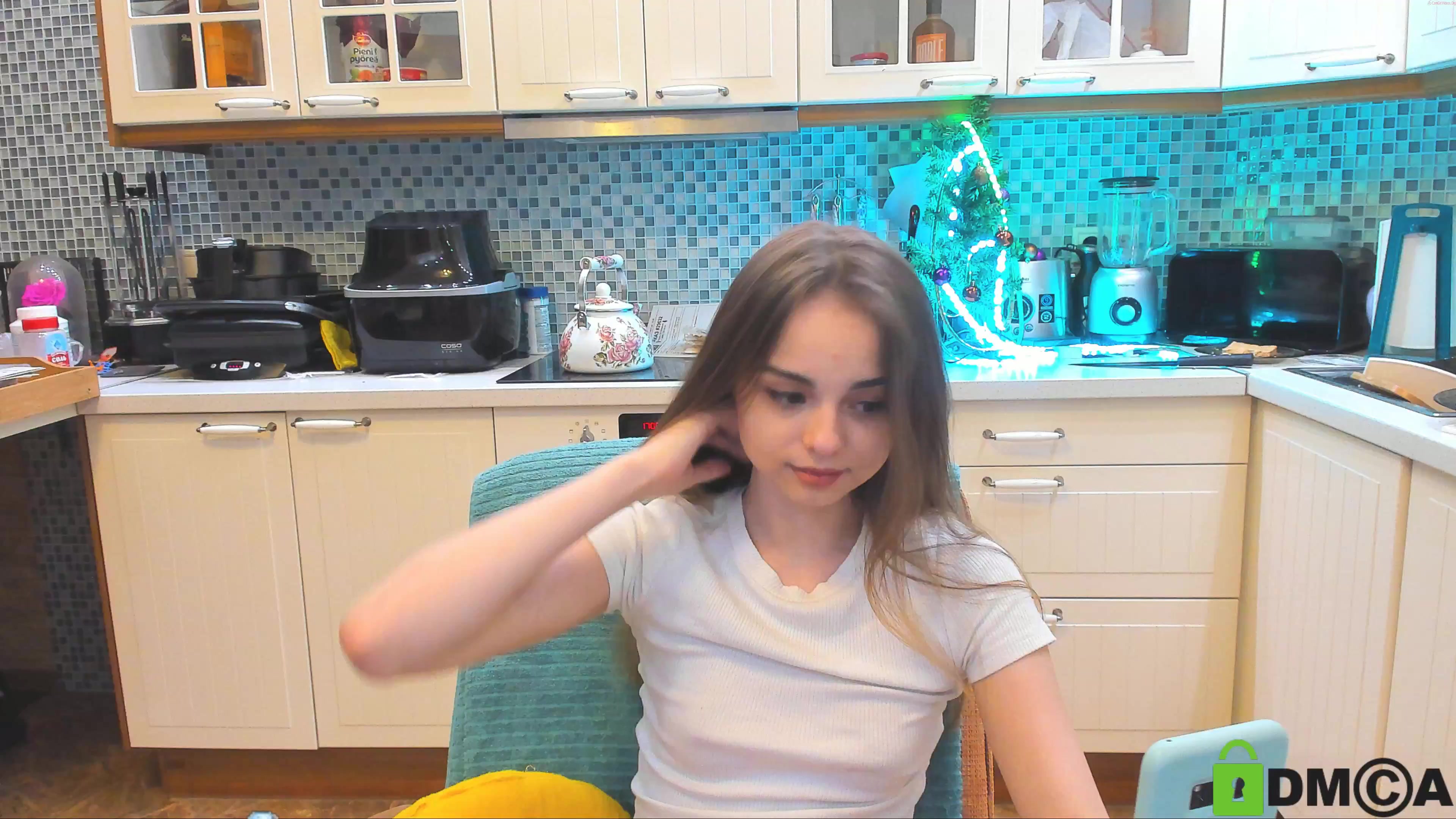 elladearest black-haired beauty communicates in fries