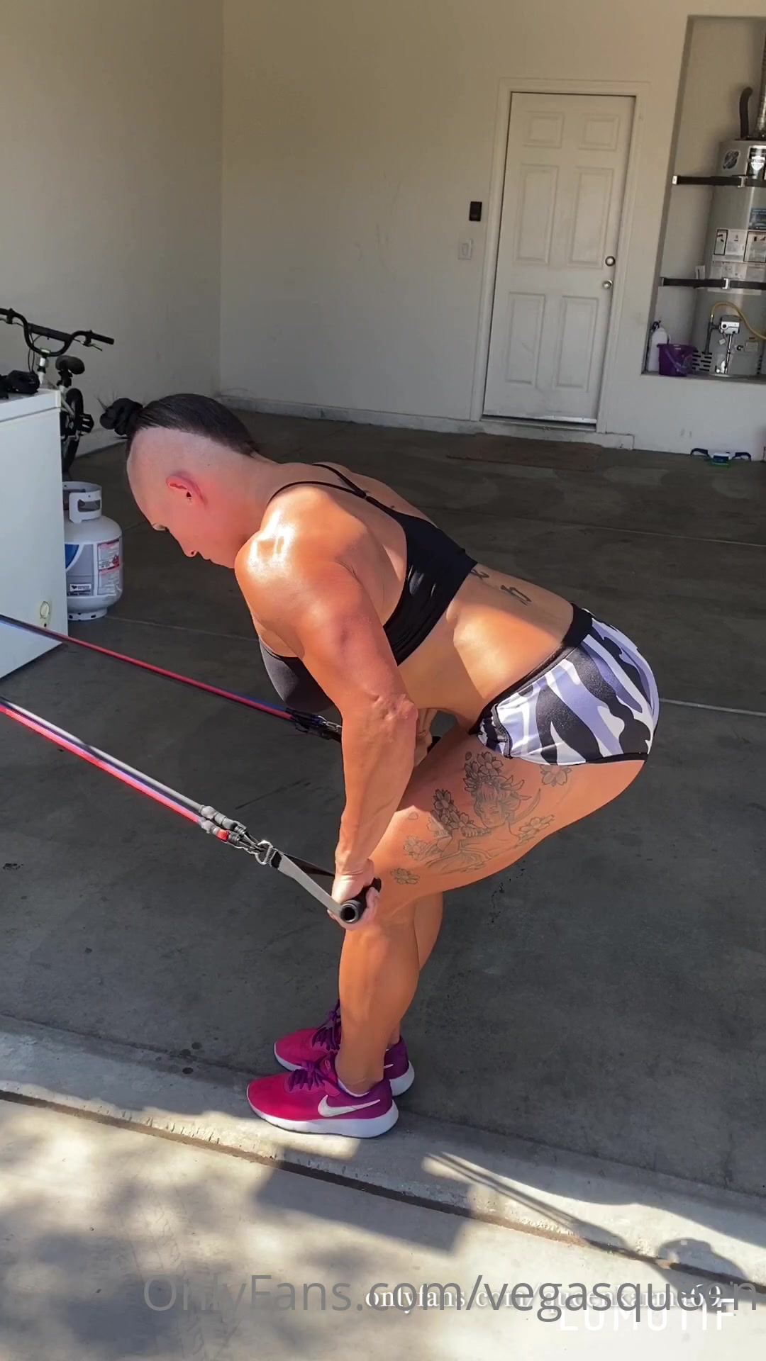 vegasqueen Over 110 degrees out so we stay home and workout outside. Chest tr