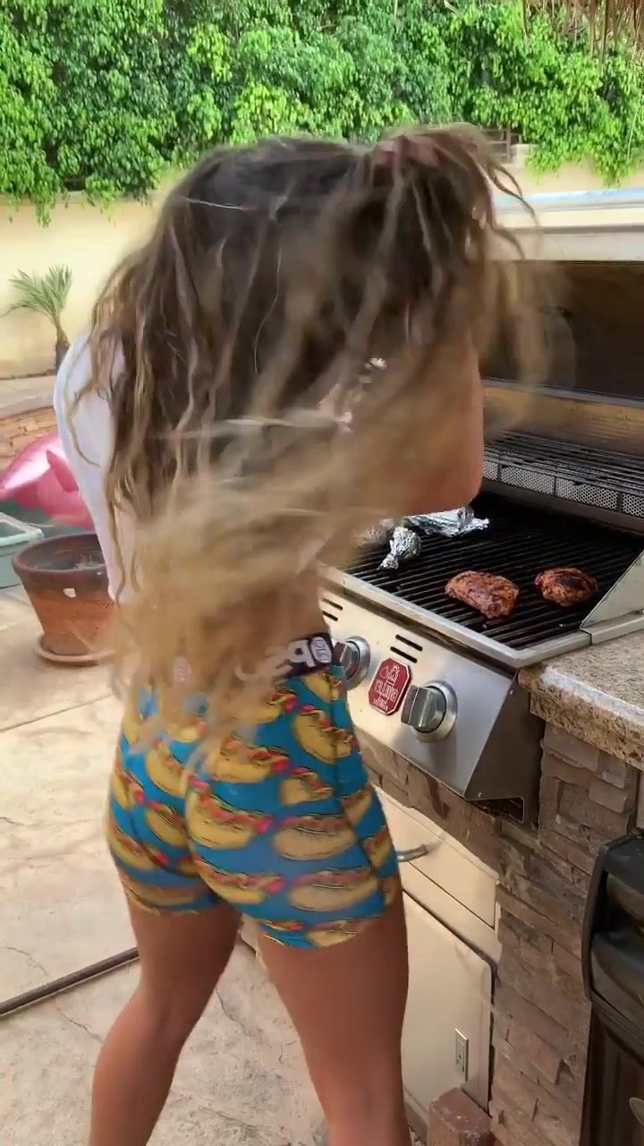 Sommer Ray aka sommerakaray onlyfans Openwork blonde erotically moving in front of...