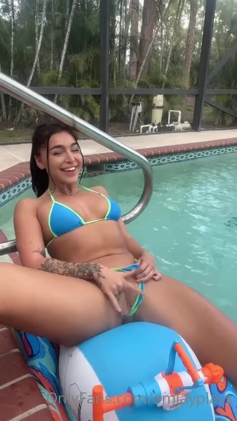 Emily rinaudo Onlyfans 27-Feb-2025 fondling her clitoris by the pool